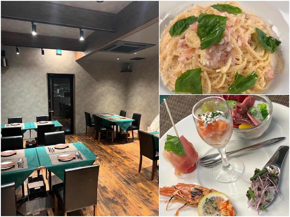 おすすめメニューは、ランチ・ディナー共に楽しめる「魚介のクリームソース バジルレモン風味」のパスタ。ぷりぷりのエビ、イカ、ホタテに、爽やかなレモンクリームソースが絶妙に絡み合い、バジルの香りが食欲をそそる一皿だ。ディナータイムには、季節と素材の恵みがたっぷり詰まった「本日のおススメディナーコース」や、その日の厳選食材をふんだんに使用した「本日の前菜盛り合わせ」もおすすめ。シェフの感性と技が光る美しい料理は、目でも舌でも楽しめる。