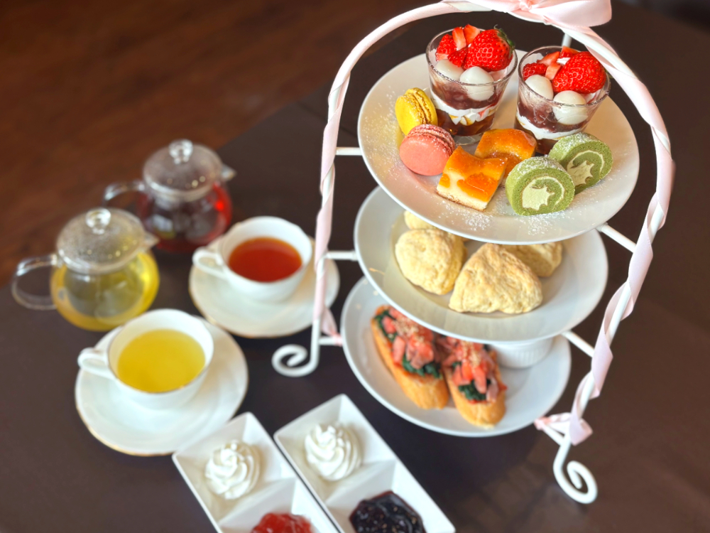 「アフタヌーンティーは初めてという人や、カジュアルにお茶を楽しみたい人たち、学生やおひとり様でも作法やルールを気にせず楽しんで欲しい」との言葉通りカジュアルな雰囲気を大切にしているが、内容は、数種類のスイーツやスコーン、サンドウィッチなどの軽食が紅茶とともにいただける王道スタイルの本格派だ。旬のフルーツをたっぷり使い華やかに仕上げるビジュアルと味に定評のある同店名物のパフェを手がけるパティシエやシェフが一つひとつ手作りしたスイーツとセイボリーは見た目も美しく、量にも大満足で、会話が弾むこと間違いなし。