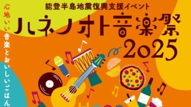 【10/19(日)】能登半島地震復興支援イベント「ハネノオト音楽祭2025」をLAKUNAはくいにて開催