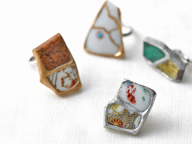 なかでも「巨匠の片鱗」(1回2,000円)は、本物の九谷焼の陶片を金継ぎして、唯一無二のアクセサリーに生まれ変わったシリーズ。違う素材をつなぎあわせてまったく違う趣きに。