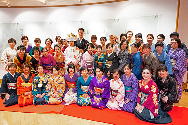 あっという間に時間がすぎてしまい、夢二の美人画のすばらしさや着物の魅力を再認識する機会となりました。最後は出演者以外に、関係者ふくめての記念撮影です。来年もぜひ開催してほしいです!