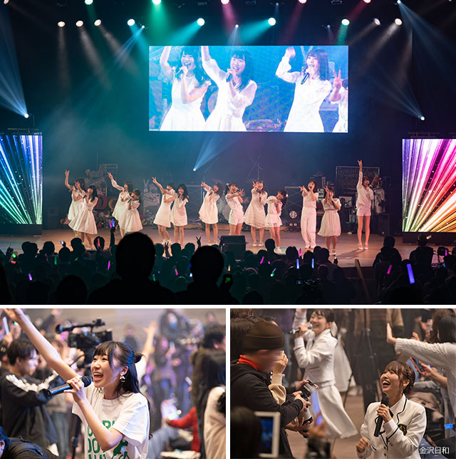 今回の感謝祭はチケットを発売するや、瞬く間に完売。当日立ち見チケットの分も合わせて、1,033人が来場。彼女たちにぴったりのポップソングを次々と披露し、3年間の感謝祭にふさわしい様々な演出がされました。
