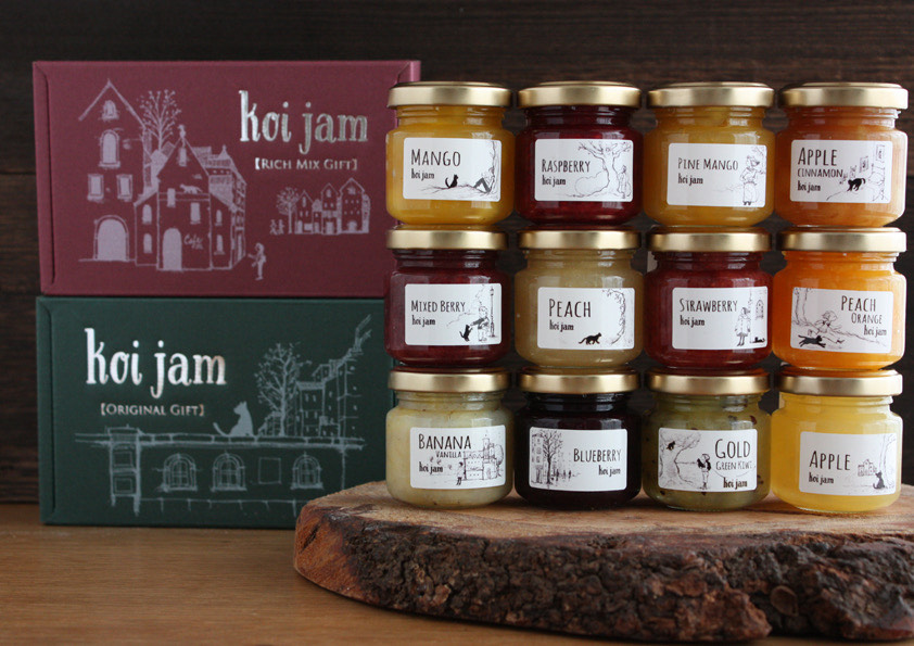 低糖度でゴロっとした果実の食感を楽しめる『koi jam』は、パンやスイーツのお供だけでなく、肉料理やチーズとの相性も良いのが特徴。見た目もBOXもキュートなので、ギフトにもおすすめだ。