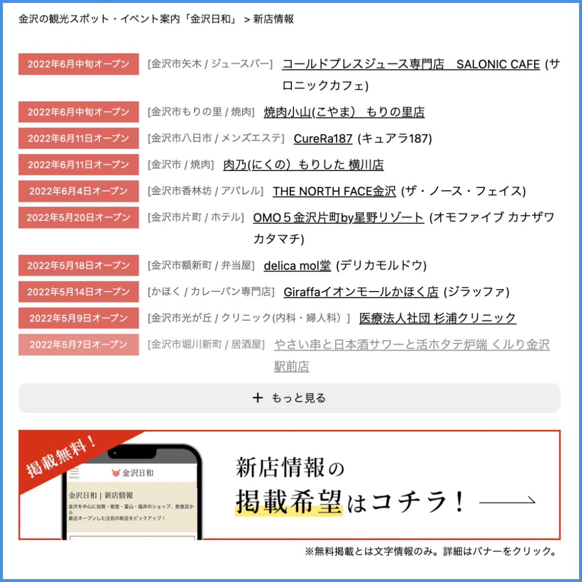 ちなみに、こちらへの情報の掲載は無料です。これからお店をオープンされるオーナーの皆様、ぜひ新店情報をお寄せください。