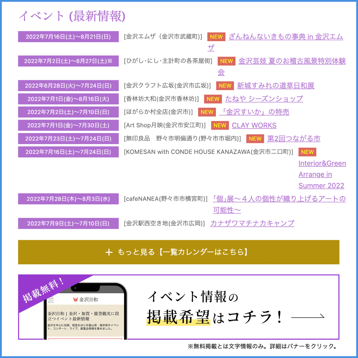 【金沢・加賀・能登のイベント最新情報】石川県内のイベント文字情報を無料掲載中☆
