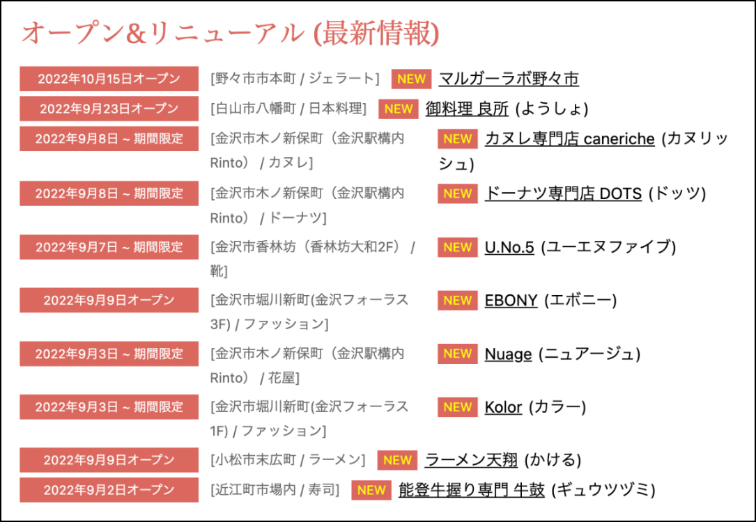 また、金沢駅周辺ではRintoや金沢フォーラスで、ポップアップショップが続々登場。10月中旬には野々市に大人気ジェラート店『マルガーラボ野々市』がオープン予定だそうで、スイーツ好きにはたまらない秋となりそうです。