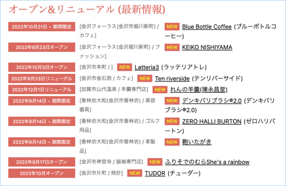 【今週のNEW OPEN:新店情報まとめ】石川県内の開店&リニューアル&ポップアップショップ☆