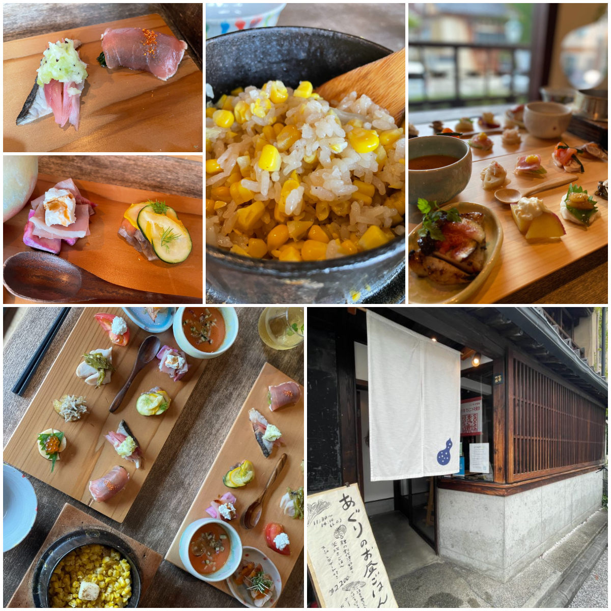 さらに、炊きたての釜飯も。この日は「とうもろこしとタマネギの釜飯」で、とうもろこしがたっぷり!芯も一緒に炊き込んであり、甘くて美味しくて、箸が止まりませんでした。お米も石川県産で、吉野谷村の農家から仕入れているのだそうです。ヘルシーなランチですが、品数が多くボリュームもしっかりあってお腹いっぱいになりました。今回いただいたのは夏メニューでしたが、現在のランチは秋メニューにがらりと変わっているとのこと(※写真左上)。五郎島金時や加賀れんこんなど、秋の旬の素材を取り入れ、デザートには焼き芋ティラミスも。秋メニューも大満足間違いなしです!人気店なので、予約がおすすめです。町屋でゆったりとランチタイムを楽しんでくださいね。