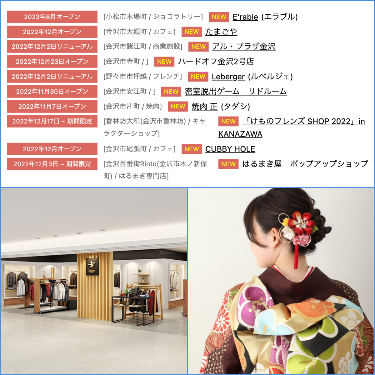 石川県の新店&リニューアル&ポップアップ情報を紹介している「NEW OPEN」。