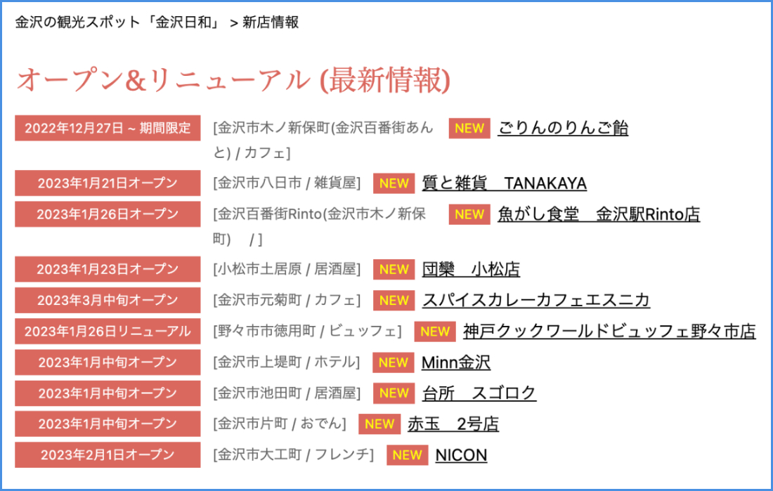 石川県の新店&リニューアル&ポップアップ情報を紹介している「オープン&リニューアル」。
