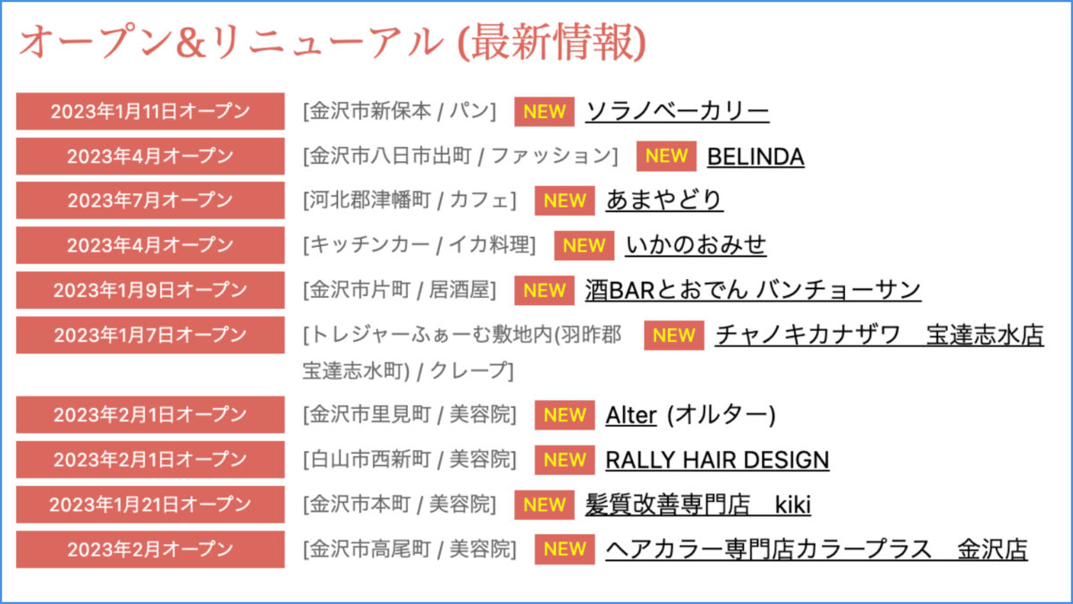 石川県の新店&リニューアル&ポップアップ情報を紹介している「オープン&リニューアル」。