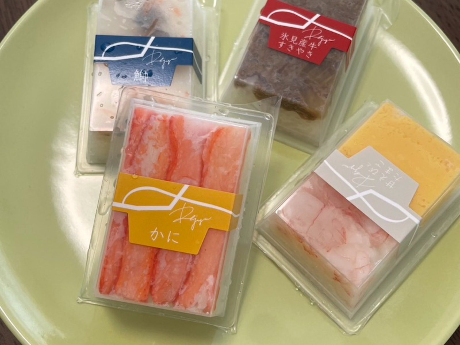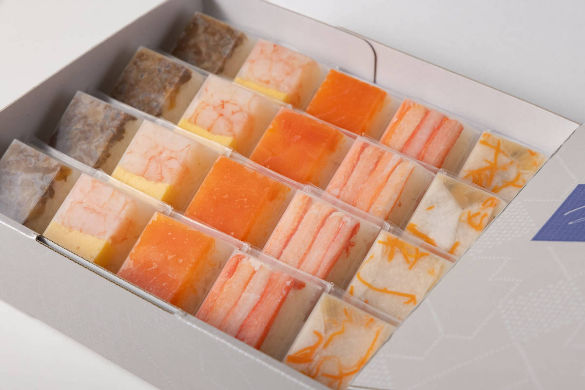 『源』がいつでも気軽に押し寿司を食べてほしいと提案するのは、一口サイズの可愛い押し寿司「レジュウ」。おすすめのバラエティーセットは、「ます」、「かに」、「甘えびとたまご」、「ぶり」、「氷見産牛すきやき」が4つずつ入った豪華なボックスで、見た目も華やか。パーティーの手土産に持参したら話題をさらうこと間違いない。