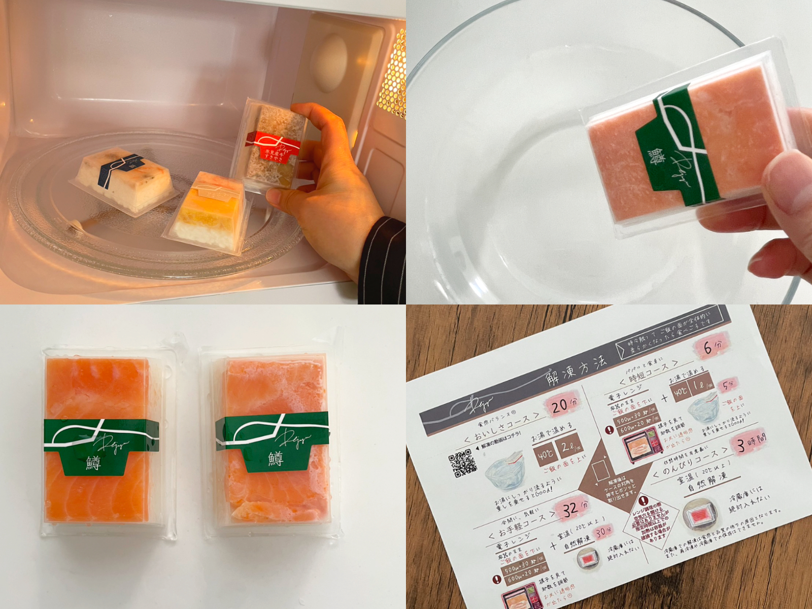 おいしくいただくための解凍方法は4つ。食感バランスのよい「おいしさコース」、ぱぱっと食卓に並べられる「時短コース」、何かの合間に気軽に解凍する「お手軽コース」、放っておくだけで簡単な「のんびりコース」がある。レンチンしたりお湯につけたりとどれも簡単だが、どれが一番おいしいのかと全部の解凍方法を試してみたところ、おいしさコースでの解凍が1番、のんびりコースが次に好みだった。ただ、他のスタッフは時短コースやお手軽コースで少しだけご飯が温かくふわっとなった状態が好きだという。どう解凍してもおいしいが、好みを見つけるのも楽しみの一つかもしれない。