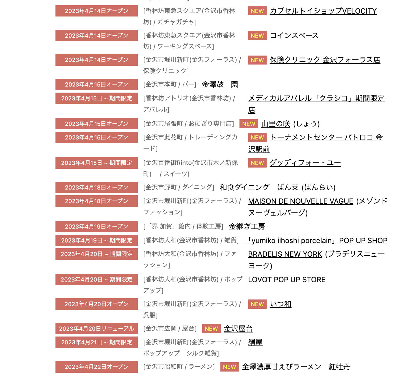 【4/16(日):今週のNEW OPEN】石川県内の新店舗&リニューアル&ポップアップショップ☆