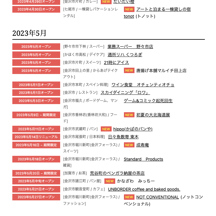 【5/14(日):今週のNEW OPEN】石川県内の新店舗&リニューアル&ポップアップショップ☆