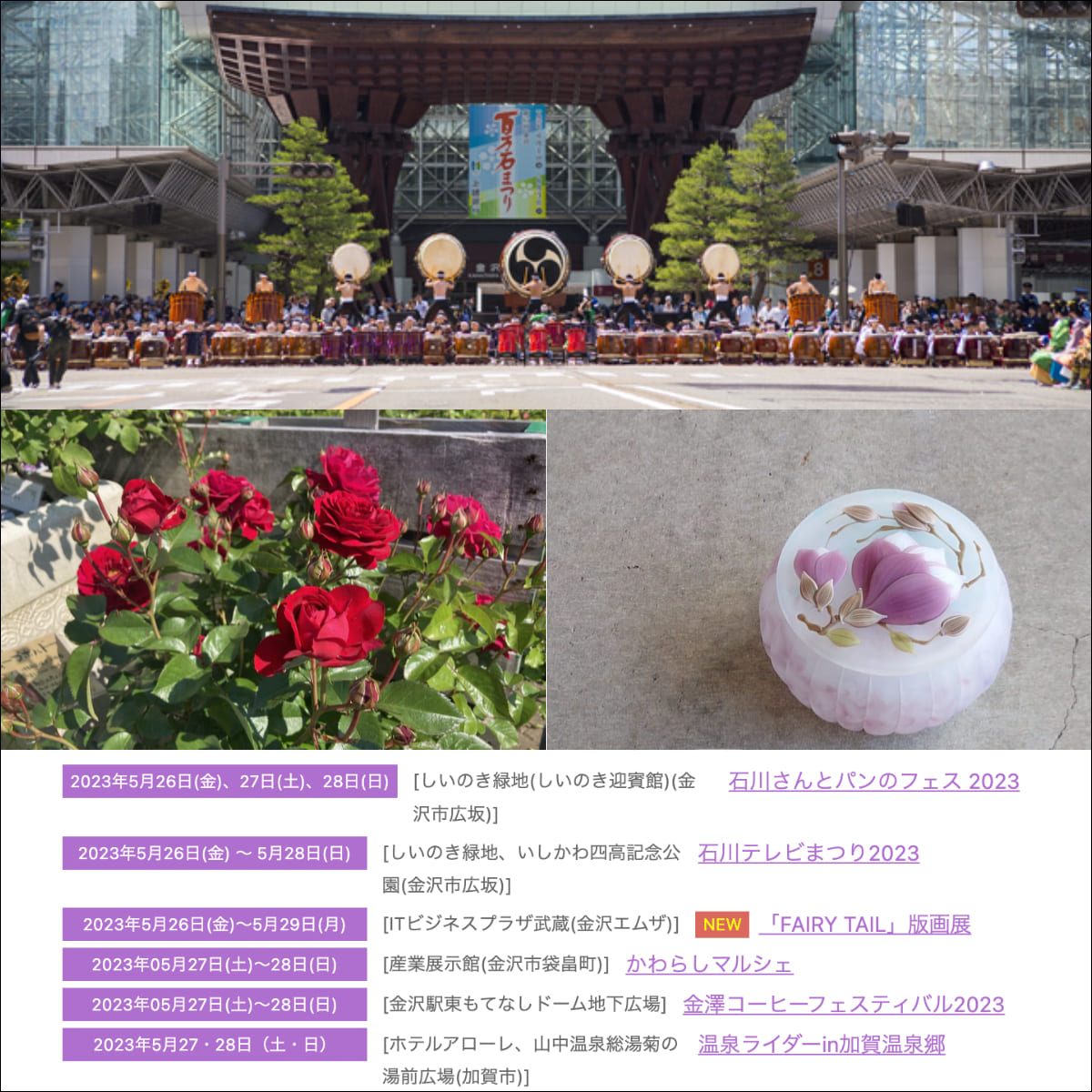 石川県を中心に最新のイベント情報を紹介しているコーナー「New Event」。石川県内の各地で様々なイベントやお祭りが開催。そこで今週開催中(もしくは近日開催開始)のイベントをピックアップしてご紹介♪