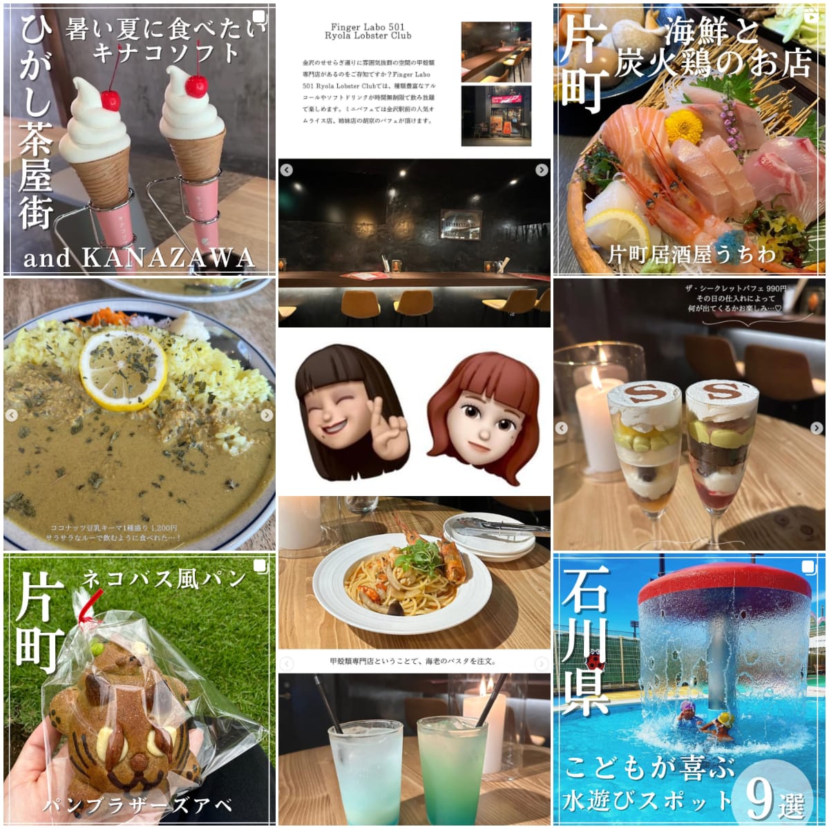 みゆなるログさんは、カフェ&居酒屋巡りが好きな妹・みゆさんと、3児の母で子連れスポットに強い姉・なるさんの石川県出身姉妹。Instagramでは、金沢市内のカフェや居酒屋、レストラン、スイーツなどのグルメスポットを中心に、デートや子連れのお出かけ情報なんかも、動画と雑誌のような美しいサムネイルで楽しく紹介されています。なお、お二人は飲食店のお得なクーポンや情報を発信するブログ「金沢グルメ.jp」も更新中。こちらも金沢近郊のお店がエリアごとに掲載されていたり、「キッチンカー」「子連れに安心」「デート向け」などのシーンごとに情報がまとめられていたりするので、使い勝手が抜群ですよ♪