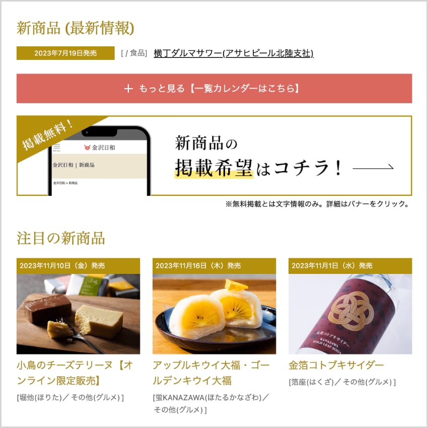【金沢日和】新商品情報を募集|石川県内の企業の皆様、最近発売された商品をご紹介ください!!