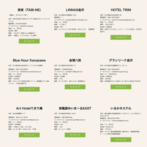 情報は随時更新されていくそうですので、■能登震災受け入れ宿泊施設一覧にてご確認ください。