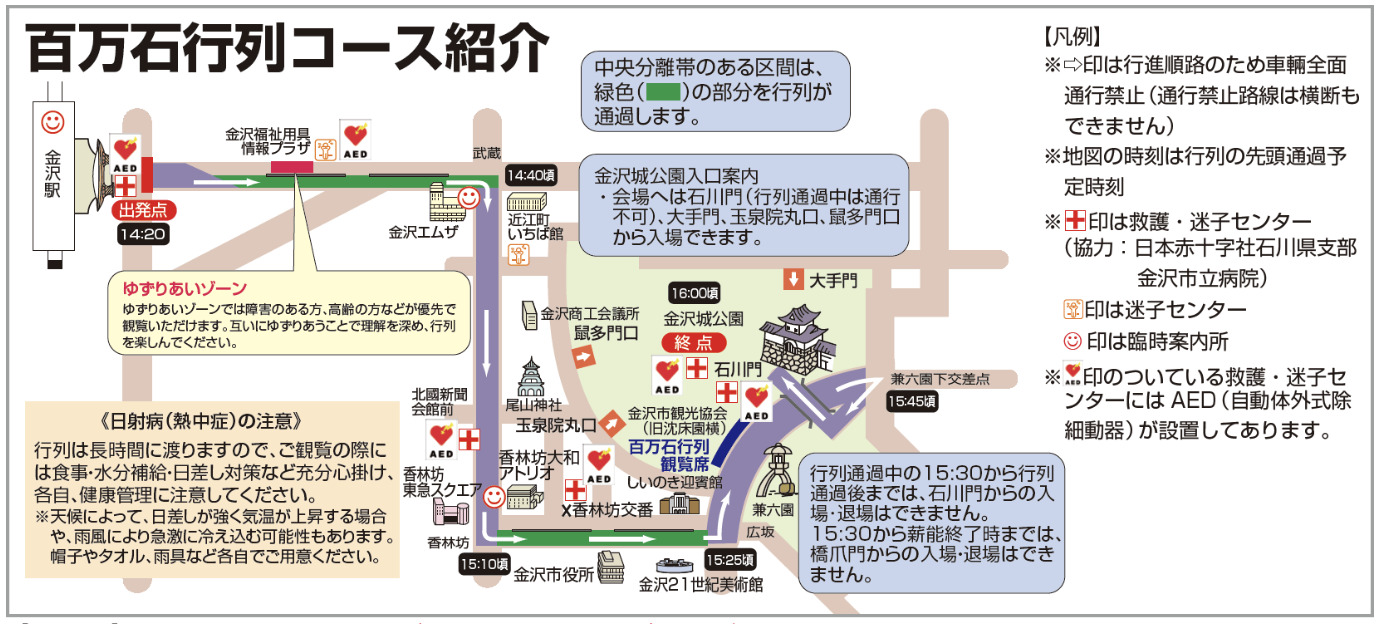 それだけ賑わうなら、いつ、どこで行列を見るのかは、今のうちにチェックしておきたいですよね。今年の順路は以下の通りです。