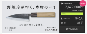 では、初回の成功はどのようにして実現していったのだろうか。『ふくべ鍛冶』のMakuakeの最初の挑戦は2023年8月に実施したプロジェクト、イカ割き包丁の「SHINBU-心舞-」で、これはクラウドファンディング初挑戦でもあった。2023年2月に東京ビッグサイトの展示会に出店したことから、事業がクラファンにマッチしそうだと、クラウドファンディング関連会社から声がかかったという。
