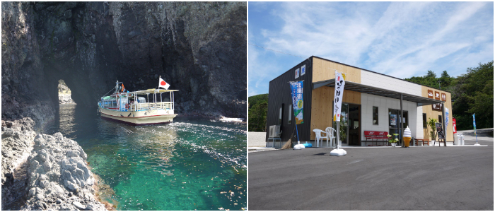 遊覧船乗り場のすぐ近くにある『旅の駅巌門』では、季節限定の「海の塩ソフト」や「自家製レモネード」、「さくら貝のハンドメイドアクセサリー」など、ここでしか買えないお土産が多数並びます。