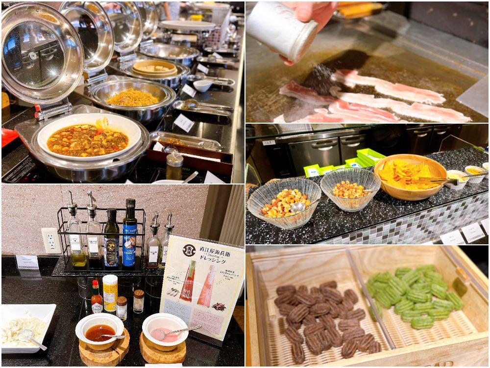 食事メニューは、ホテルメイドの洋食・中華を中心に、多彩なブッフェを楽しめます。ライブクッキングで「豚バラ肉のソテー」などの熱々焼きたての鉄板料理があるほか、サラダやミックスナッツ、コーンチップスなど、お酒に合うメニューも充実なので、飲みながら数々の絶品料理をゆっくり堪能できます。スイーツには、美味しいチョコチュロスと抹茶チュロスが登場!スイーツ好きには少し物足りない感じもありましたが、提供料理のラインナップは随時変わる予定だそうです!次に登場するメニューを楽しみながら、期間中にぜひ何度でも足を運んでくださいね。