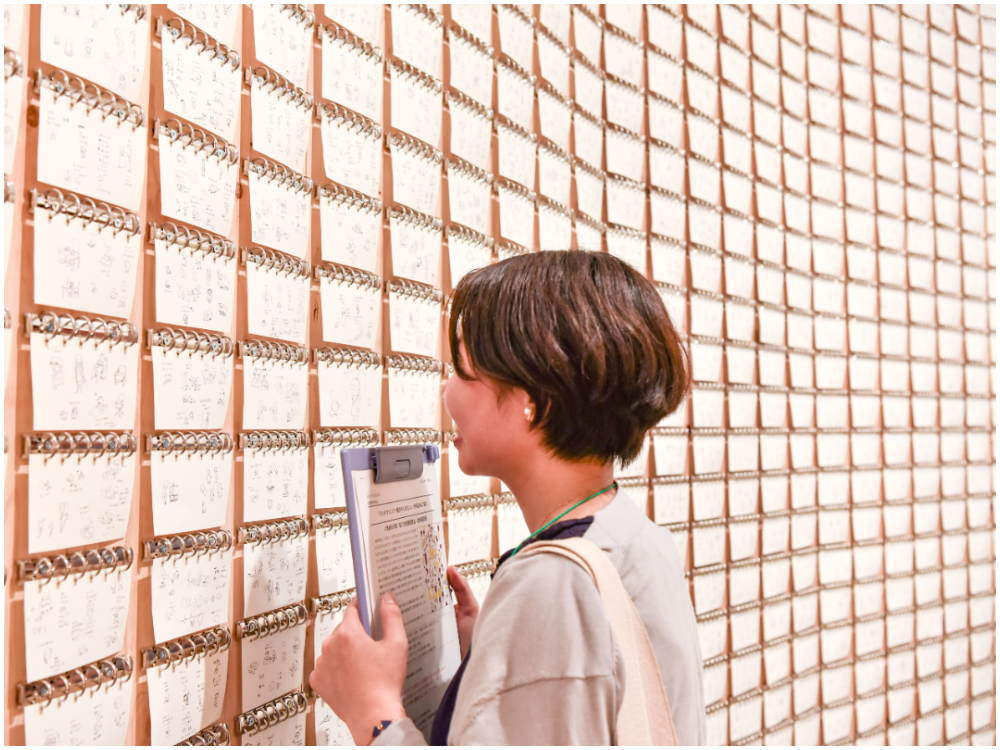 会場に来た人だけが見られる&体験できる特権もあります。見逃せないのは「旅の思い出スケッチ」。 21美の印象や「ずっと見たかった」という念願の「あの部屋」の感想が描いてあります。写真はあえて載せませんので、お見逃しのないよう! (会場に入ってすぐの場所に展示してありますよ♪ )