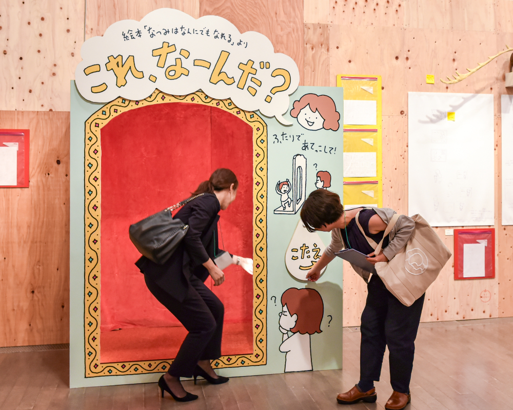 なぜこんなにも楽しい仕掛けがたくさんあるのかというと、幼い頃のヨシタケさんの体験が元になっているんだそうです。通常絵本の展覧会といえば原画を鑑賞するもの。「見るだけ」なので、子どもの頃のヨシタケさんは「つまんない」「早く帰りたい」と思っていたそう。そんな記憶があったからこそヨシタケさんは「せっかく足を運んでもらったのに、つまらないと思って帰ってもらったら悔しい! 」という思いで、大人も子どもも楽しめるよう、色々な工夫をされたのだそうです。