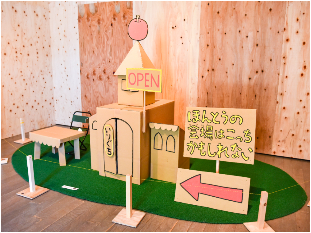 展覧会会場に入ってすぐに現れるのは、こちらのダンボールハウス。