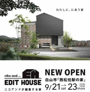住む人の気持ちとライフスタイルに寄り添った空間、家族や趣味の時間、何気ない日常も欲張りに楽しめる遊び心に溢れた住まいをプロデュースする「niko and … EDIT HOUSE」。9月21日(土)〜23日(月)の3連休はオープンハウスを実施していているので、現在家づくりを模索中の方はもちろん、将来家を建てたいと考えている方も気軽に足を運んでみては。