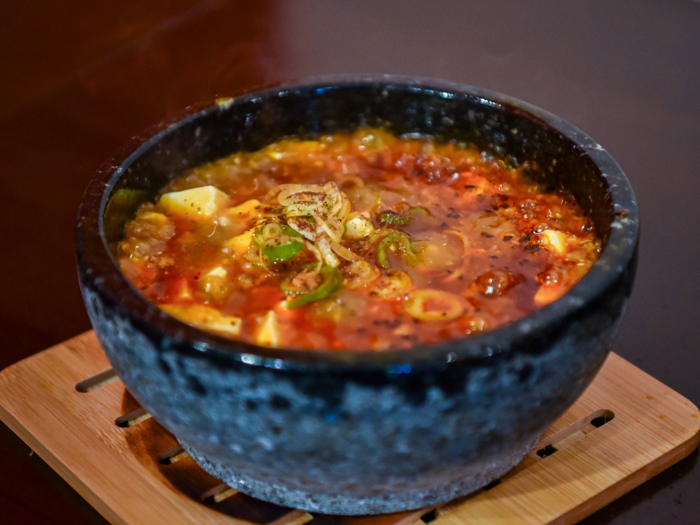 続いて、石焼き鍋に入った本格的な麻婆豆腐が登場。グツグツと主張が激しい一方、(わたしにとっては)まろやかでやさしい辛さが広がるお味です。熱々で食べながら、お腹も心も満たされる幸せを感じました。また、辛さを「控えめ・普通・激辛」でカスタマイズ可能な点も嬉しい!次は激辛を挑戦してみたいです。