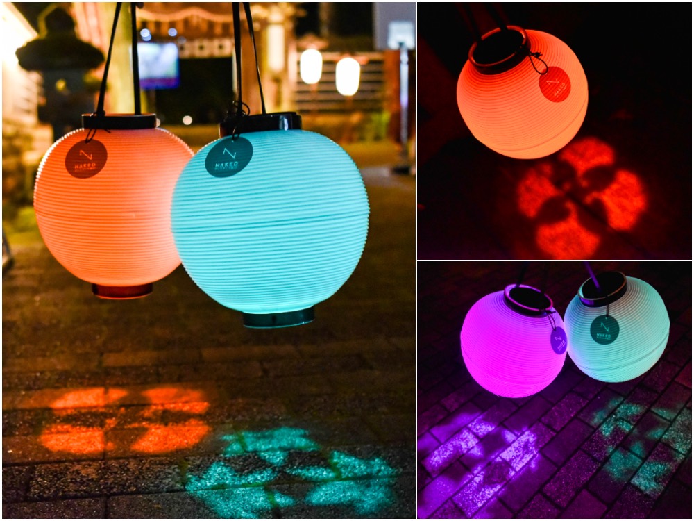 紅葉を愛でながらライトアップされた境内を散策するのも十分楽しいですが、入り口の受付でレンタルできる「NAKEDディスタンス提灯®︎」(数量限定・税込500円)を片手に巡ることでさらに楽しさが増します!地面に映し出される様々な光りが会場を鮮やかに彩り、自分自身も光のアートの一部になれる特別な体験です。