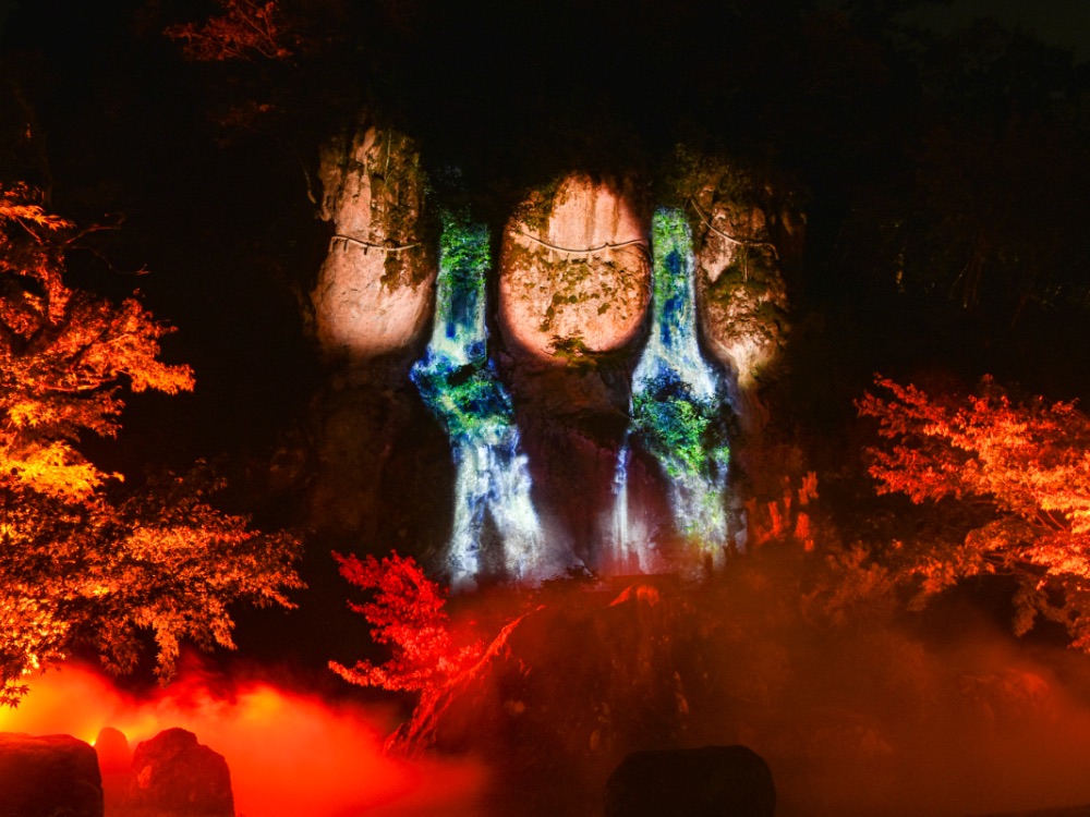那谷寺は、日本遺産「石の文化」の構成文化財の1つに登録されています。那谷寺が重んじる自然への敬意を大切にする「自然智」や自然美を守りながら、「NAKED, INC.」が華やかなライトアップを手掛けました。日本の文化と芸術を融合した、夜にしか見ることのできない秋の那谷寺がお目見え。
