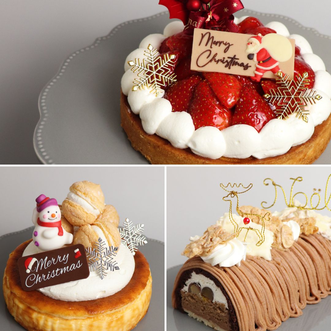 クリスマスケーキは全部で9種類。デンマーク産・フランス産の2種類のチーズを使用した「バスクチーズケーキ」は、奥深い味わいとミルキーでとろける食感が特徴です。たっぷりの苺がのった「タルトフレーズ」は、2度焼きしたサクサクのタルトに滑らかなカスタードクリームと生クリームの相性が抜群の一品。新作の「モンブランレジェ」は、3種類の生地と3種類のクリームのハーモニーがたまらないさまざまな食感が楽しめるモンブランです。予約は12月16日(月)まで。