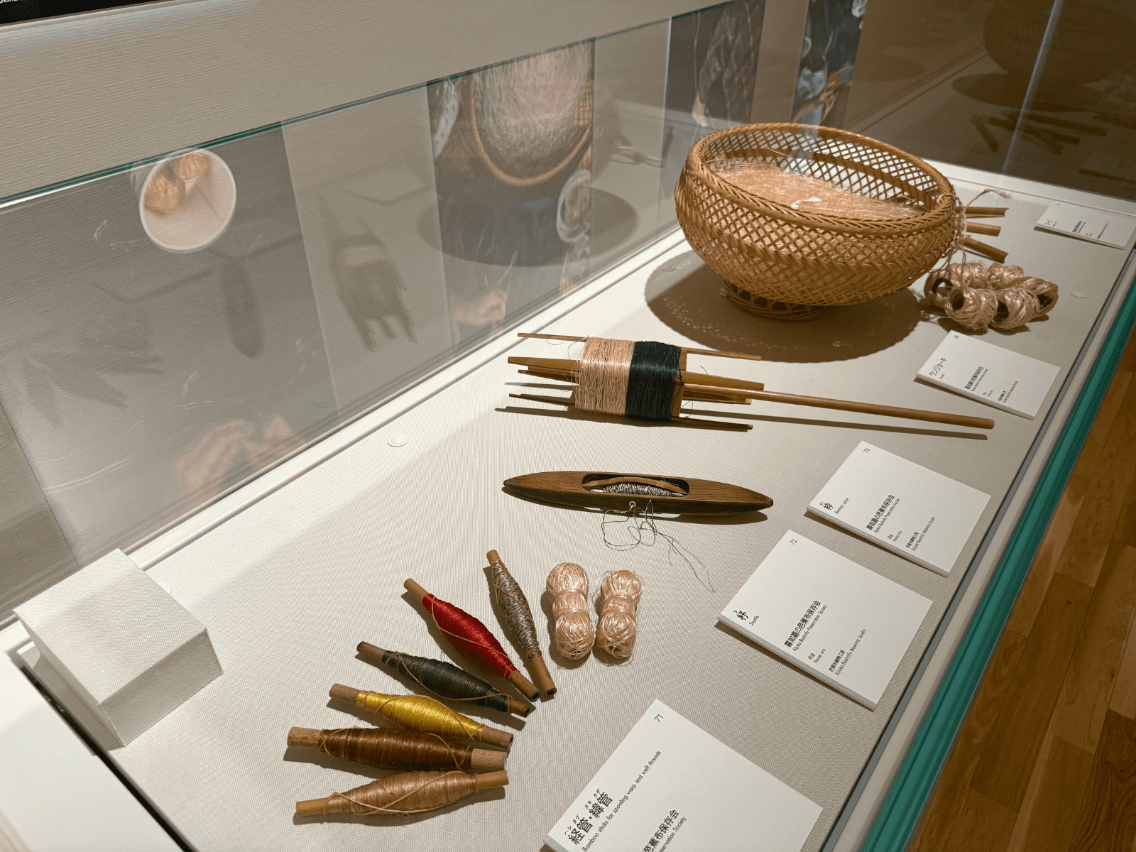 壁に掲げられた写真には、真剣な眼差しで糸に向き合う平良敏子さん。その横には工房で織り上げられた数々の着物が並びます。《芭蕉布着物「クヮイヤークヮーサー番匠」》の前では自然と足が止まりました。古典を研究しながらも独自の絣模様を生み出し、時代に即した新たな意匠へ挑戦し続けたその姿勢が、芭蕉布をただの伝統工芸ではなく「生きた文化」へと押し上げていったのだと思います。