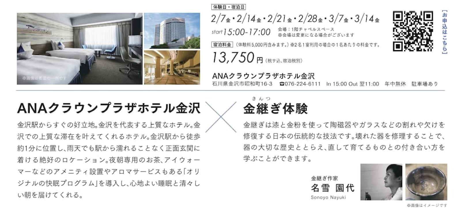 ①【ANAクラウンプラザホテル金沢×金継ぎ体験】→予約はこちらから