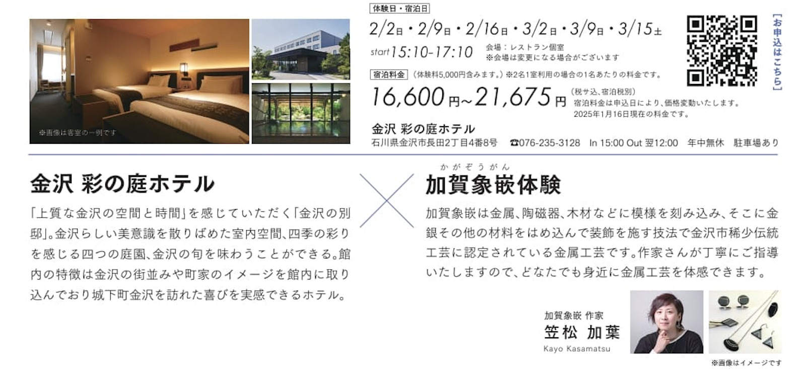 ③【金沢彩の庭ホテル×加賀象嵌体験】→予約はこちらから