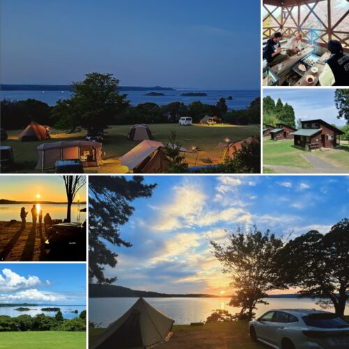 能登島の岬から七尾湾をのぞむ海辺のオートキャンプ場