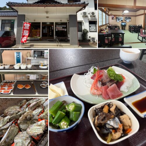 地元で水産加工業を営む店主が手がける、鮮度抜群の海鮮料理が自慢のお食事処。元は能登島大橋を渡ってすぐの場所にありましたが、震災の影響で現在は閨町の民宿「千寿荘」に移転して仮営業をされています。選べる定食が人気で、冬場はカキフライ、カキ焼きなどの牡蠣料理、夏場はお刺身やエビフライ、サザエの刺身、つぼ焼きなどが人気だそう。変わらぬおいしさと温かな接客で迎えてくれます。
