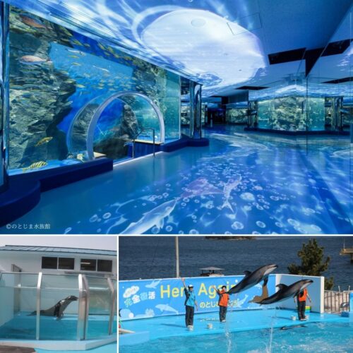 能登半島地震で大きな被害を受けた「のとじま水族館」は2025年3月22日に全面再開。他の水族館や動物園に避難していたイルカやアシカ、ペンギンたちも戻り、再び元気で可愛らしい姿を見せてくれるようになりました。2024年10月には新たなジンベエザメ「モモ」が仲間入り。悠々と泳ぐジンベエザメの大水槽や人気のイルカショー、間近で見られるペンギンのお散歩などが見どころで、季節ごとの展示イベントにも注目です。