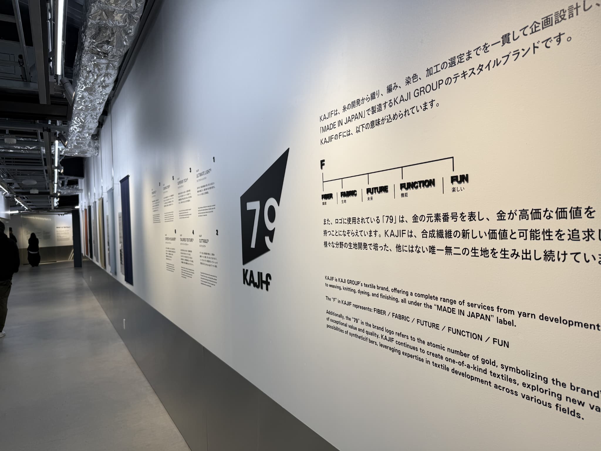 奥の壁に見える「79」という数字は、金(ゴールド)の原子番号である「79」に由来しているのだそうです。これはカジグループが、繊維産業において高品質で価値ある製品を提供するという理念を象徴しているのだとか。工場内ではさまざまな「79」と出会えます。