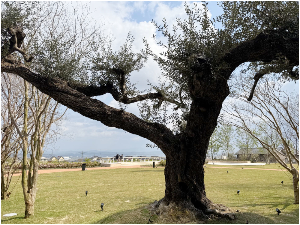 樹齢約1,000年の南イタリア産のメインオリーブと樹齢500年以上のスペイン産ブランコオリーブが堂々と鎮座する光景は、工場の敷地というイメージを覆してくれます。子ども用の遊具やたくさんのベンチも設けてあり、家族や子連れウェルカムな雰囲気がここでも感じられます。晴れた日には、外でコーヒーを飲みながら立山連峰を眺めることもできるそう。
