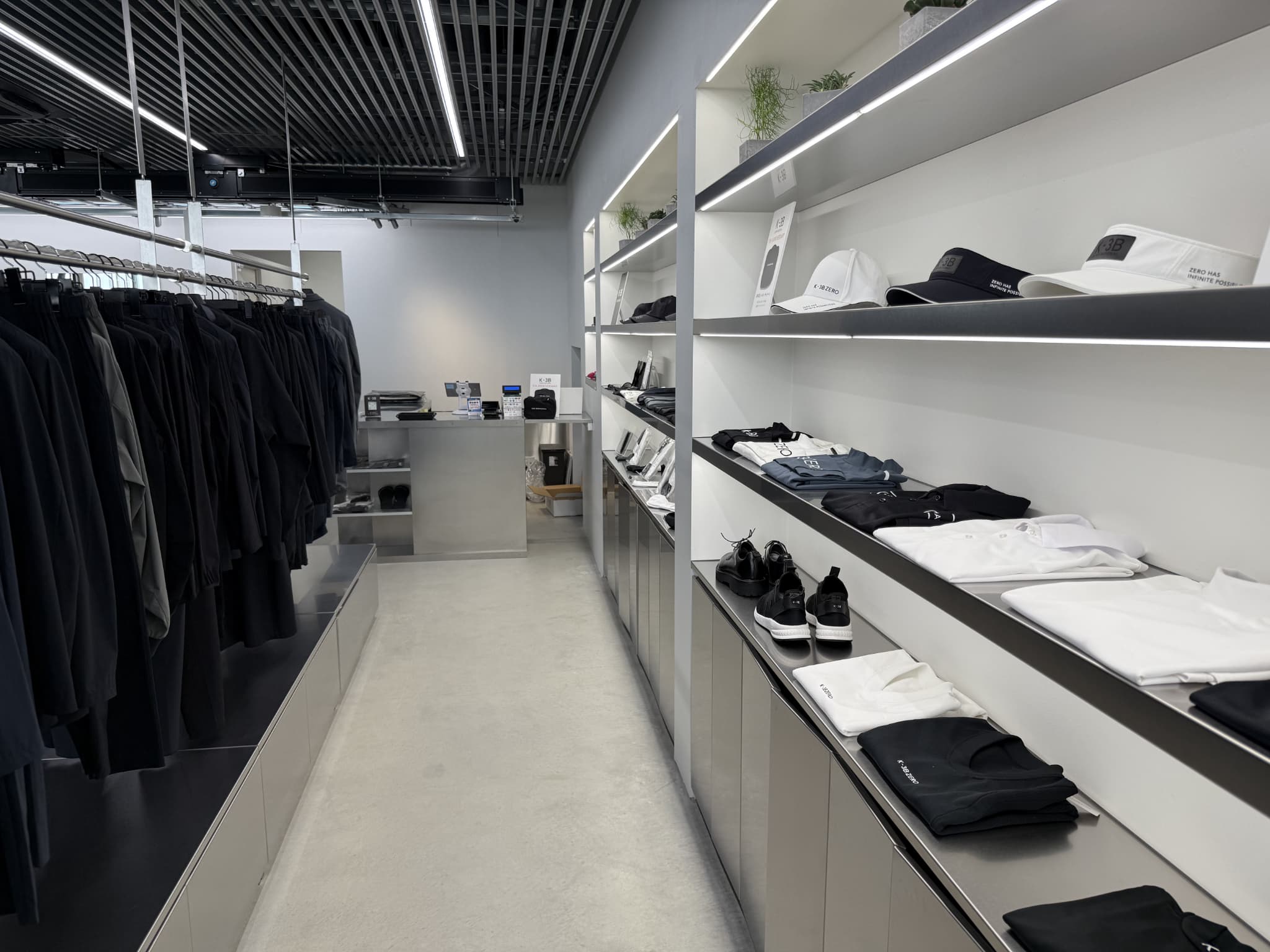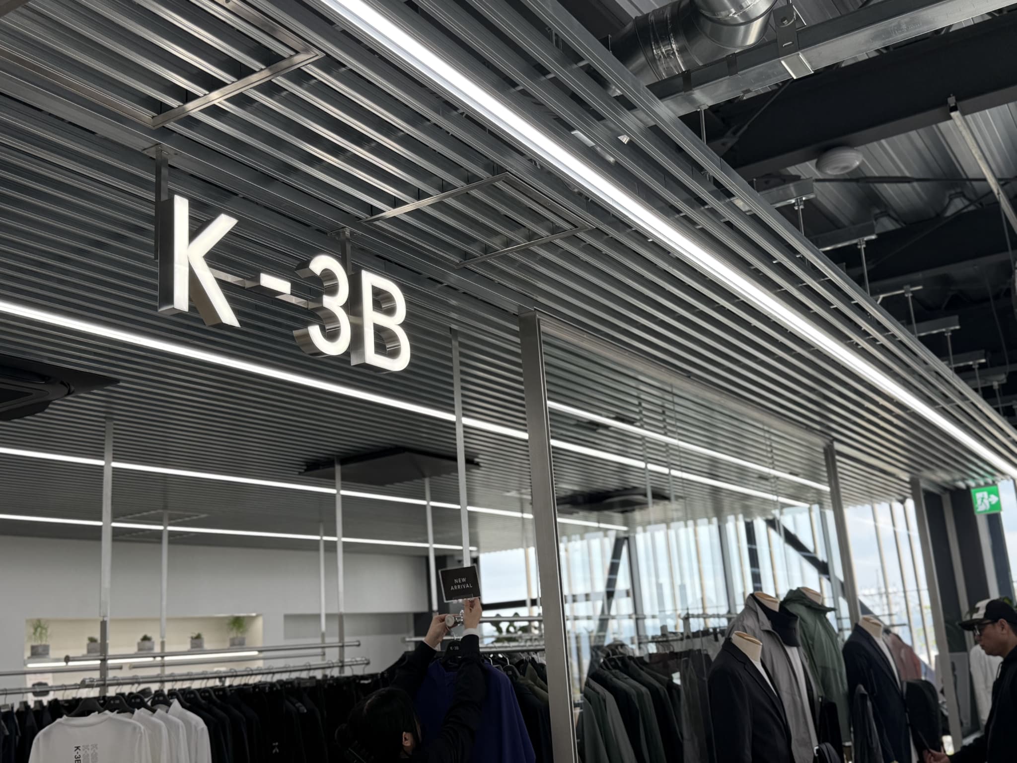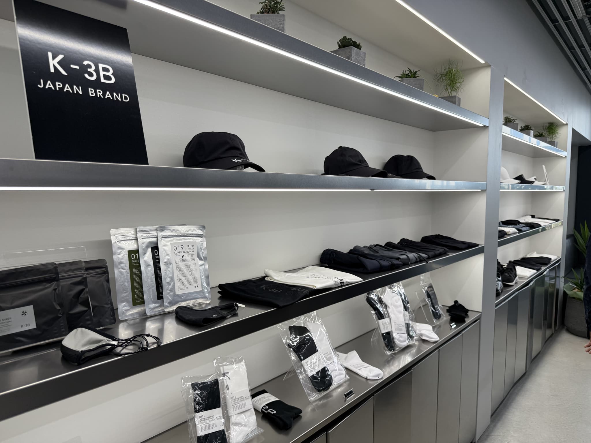 ファッションに疎い私ですが、その私ですら耳にしたことのある干場義雅(ほしばよしまさ)氏をクリエイティブディレクターに迎え、カジナイロン社の最新機能素材から生まれた『K-3B』は、おしゃれ感度の高い人々から高い支持を得ているブランドです。オンラインでの購入が基本なのですが、このオープンファクトリーに設けられた戦艦店では、質感や肌に触れる感覚、軽さなどそのクオリティの高さを自分自身で確かめることができます。多用途、時短、全天候型の超合理的なセットアップや、マットな艶感のある、着心地を重視したい女性のためのシャツワンピースなど、さまざまなアイテムを自分の目と手で確かめられるのは実店舗ならではですね。
