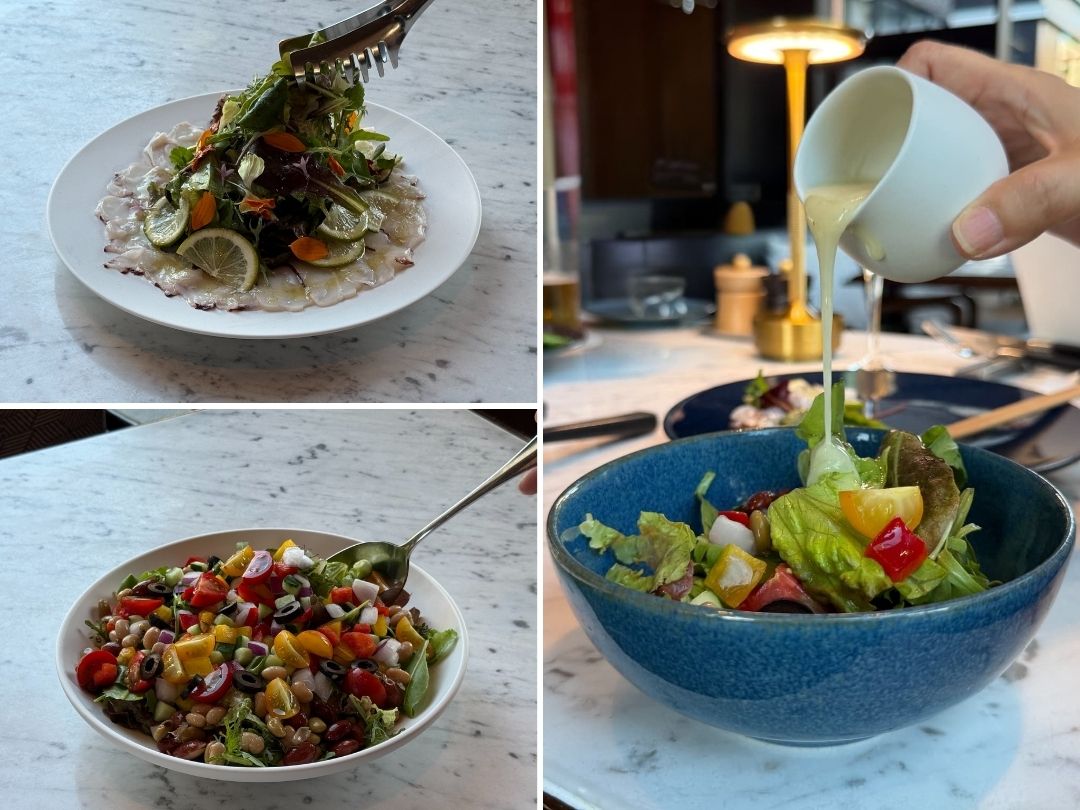 具だくさんのチョップドサラダにはフレンチとオーロラ、2種類のドレッシングが添えられていて、味変も楽しめる。健康に気をつかいたいお年頃になったBOSSは、このボリューム満点の野菜前菜にご満悦のようだ。