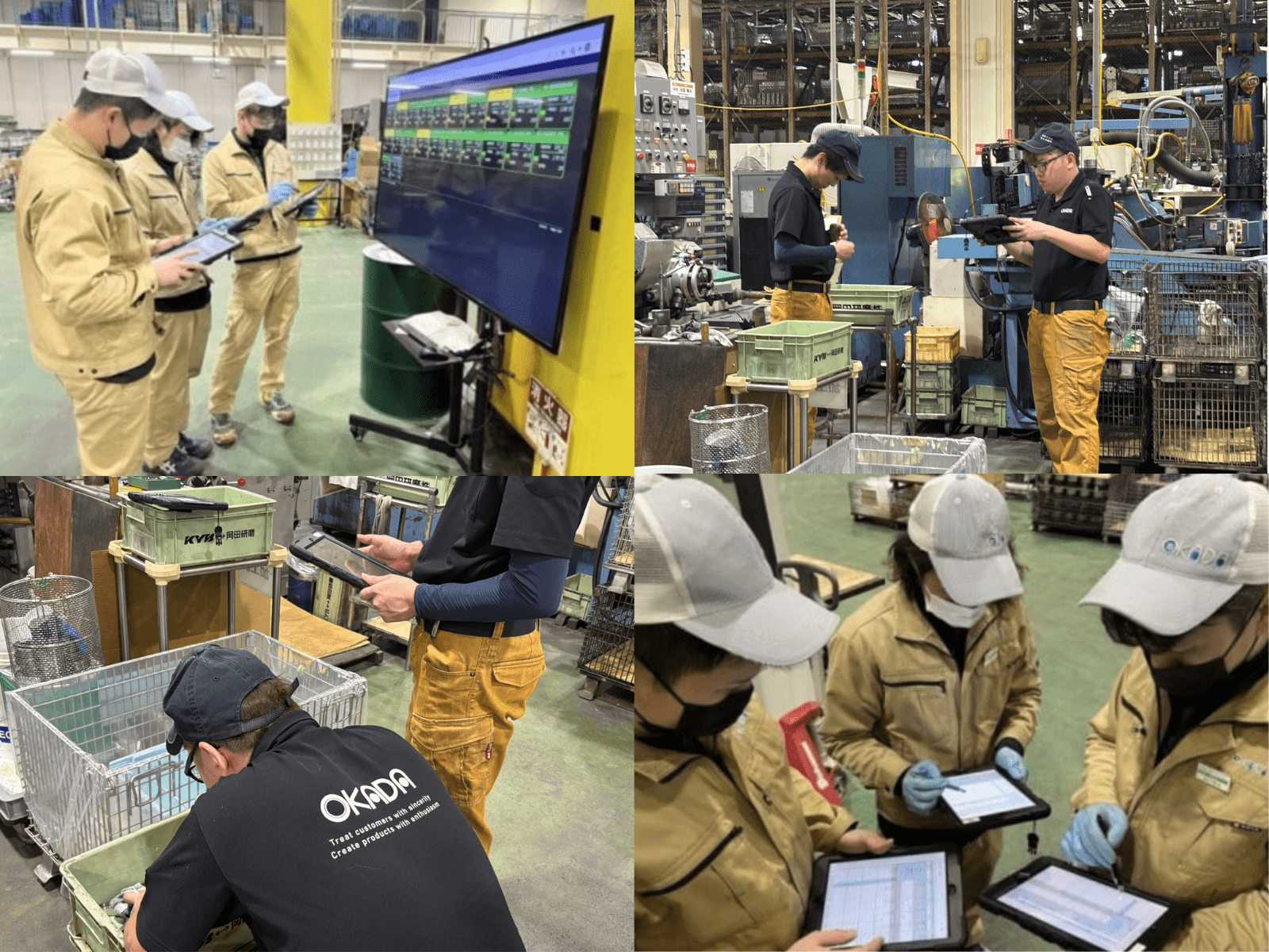 岡田研磨では、ノーコードツールや生成AIを使って20種類以上の自社アプリを開発。作業現場での在庫管理、不良品やクレームの報告、測定器の管理から、社員食堂の弁当予約、出欠連絡まで幅広い業務を効率化しています。約200台ある工作機械の稼働状況もリアルタイムで可視化し、ムダな停止を減らしています。