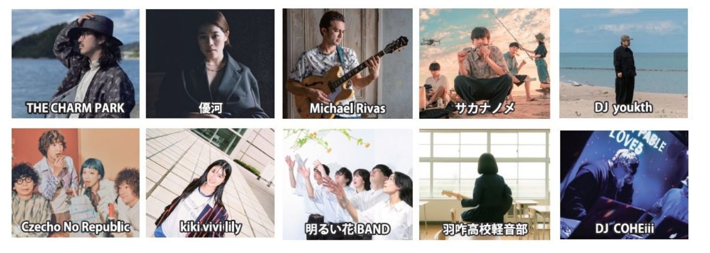 メインステージにはTHE CHARM PARK、優河、Czecho No Republic、kiki vivi lily、Michael Rivasといった人気アーティストが登場。さらに、石川県からはサカナノメ、明るい花BAND、羽咋高校軽音部も出演し、プロと地元バンドが一緒にイベントを盛り上げます。