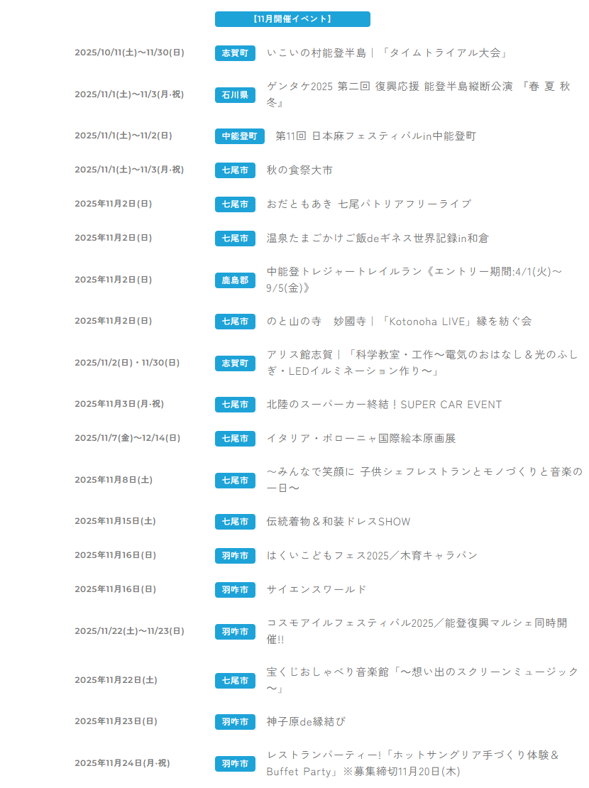 『能登日和・イベント一覧』/2025年11月能登のイベントまとめ!【更新日10/29】