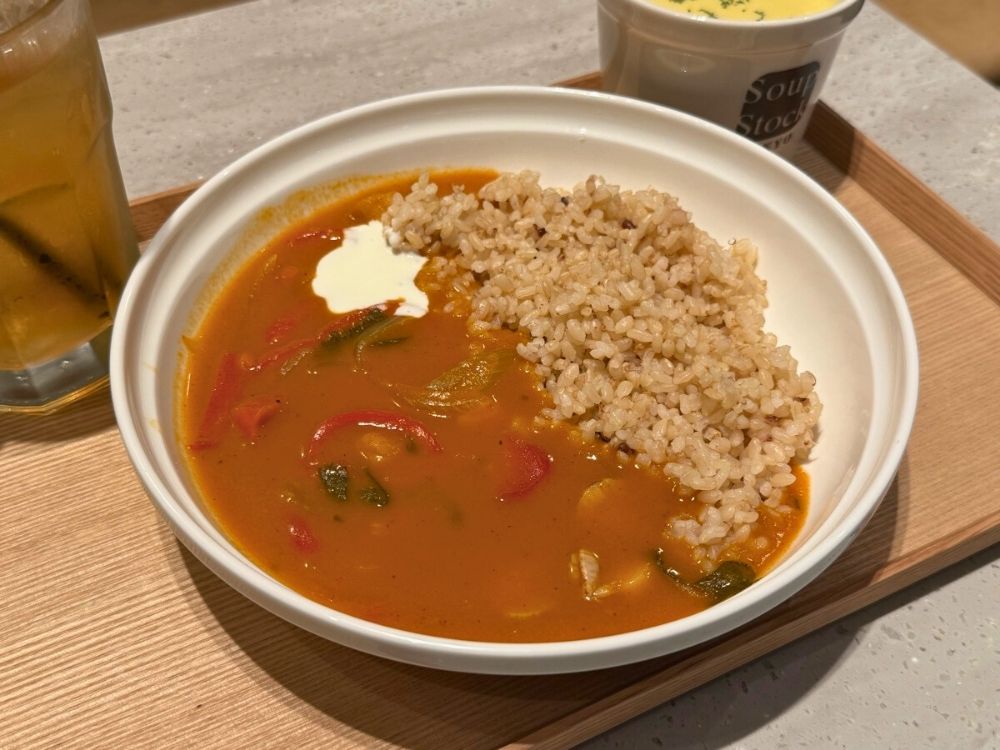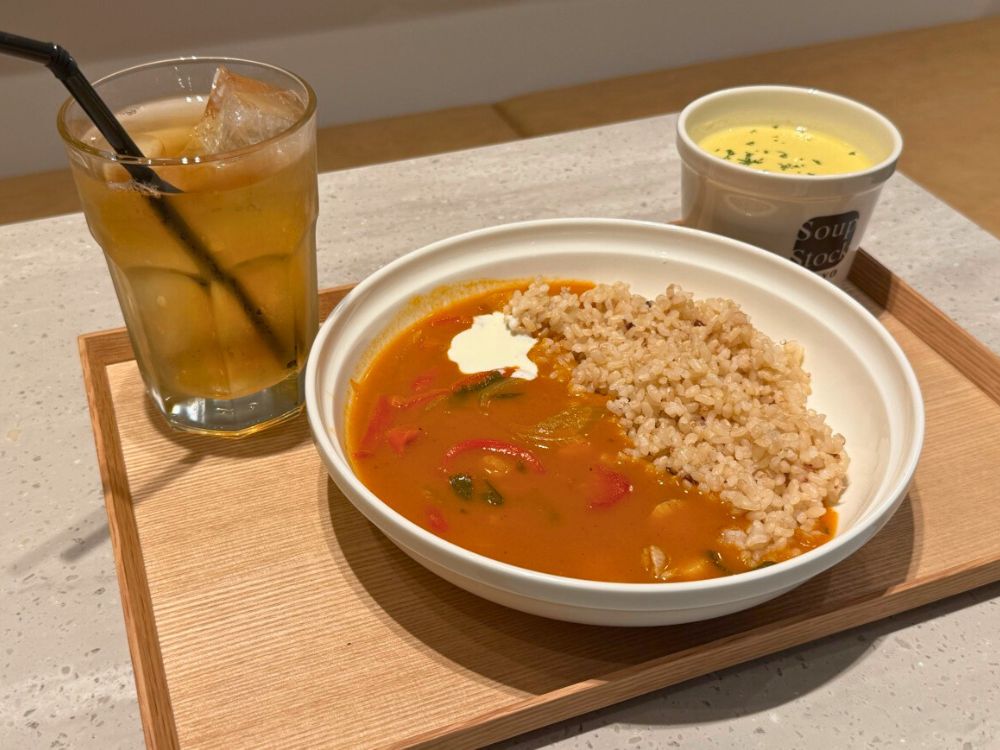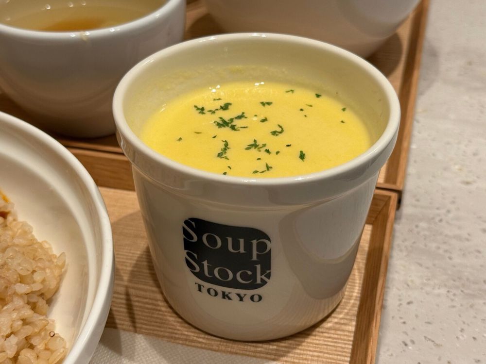 この日、「いちばん美味しい!」と思ったのは「とうもろこしとさつま芋のスープ」でした。とうもろこしの甘みがふわっと広がって、あとからさつま芋のまろやかさが重なる感じです。やさしい味わいなのに、ちゃんと満足感があって、駅ナカで気持ちを落ち着けたいときにちょうどいい一杯でした!