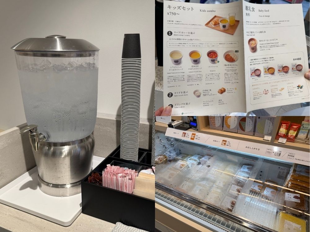 お水はセルフサービスで、キッズセットや離乳食の販売もあるので、お子さま連れでも安心して利用できそうです。
